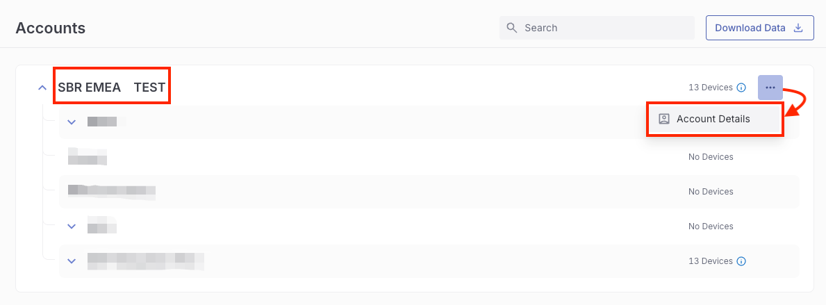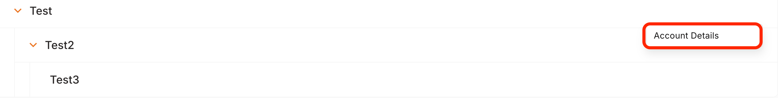 - 対象のアカウント名をクリックします。ドロップダウンリストから「アカウントの詳細」を選択します。