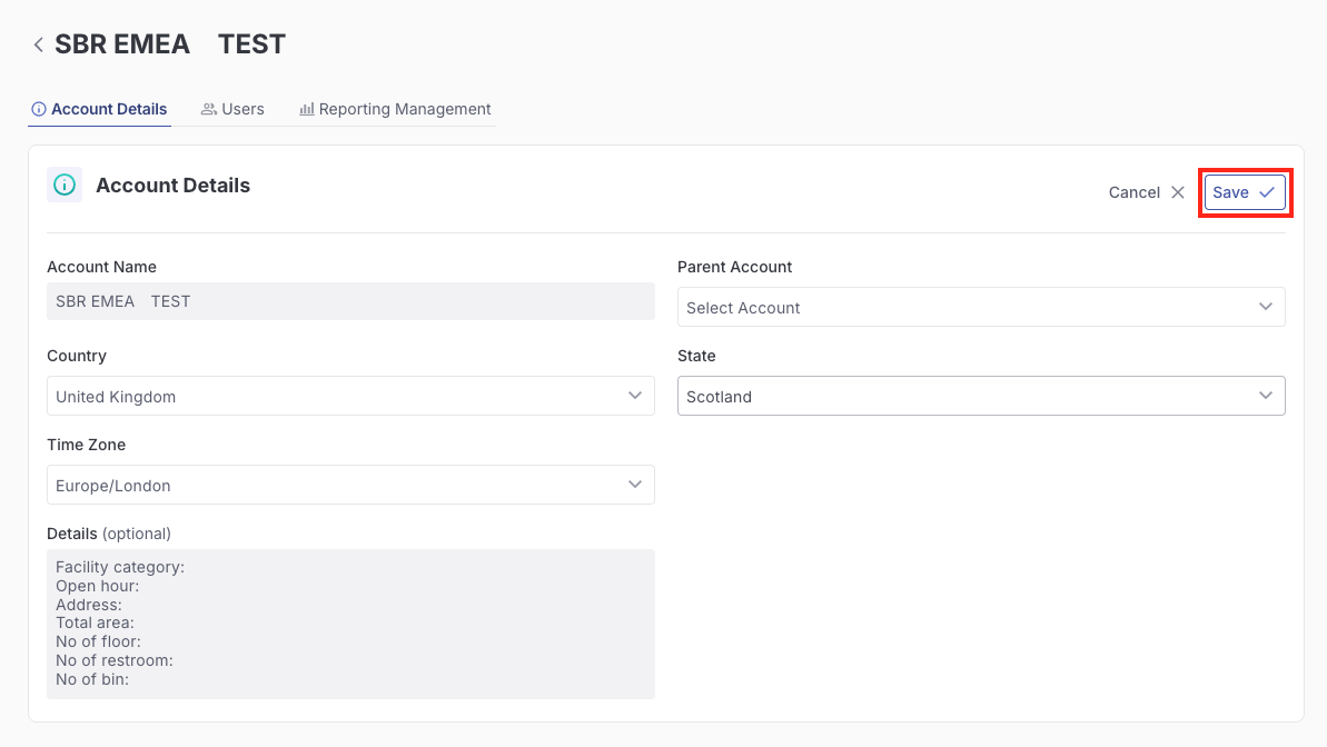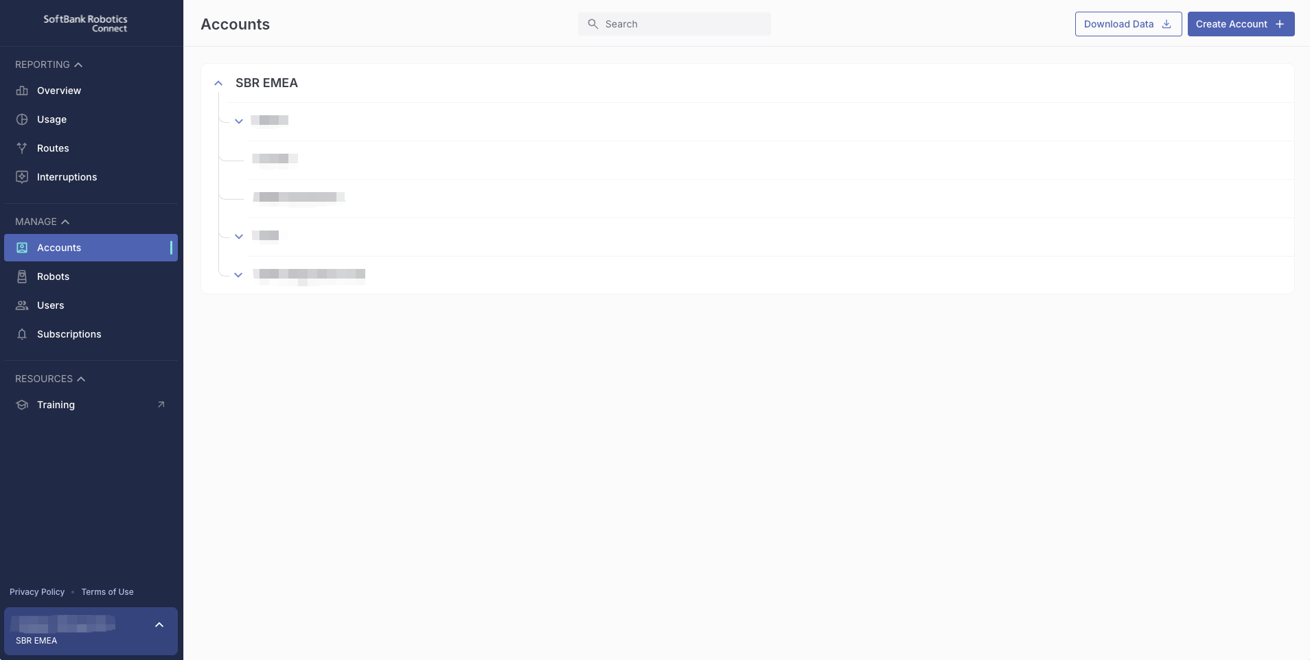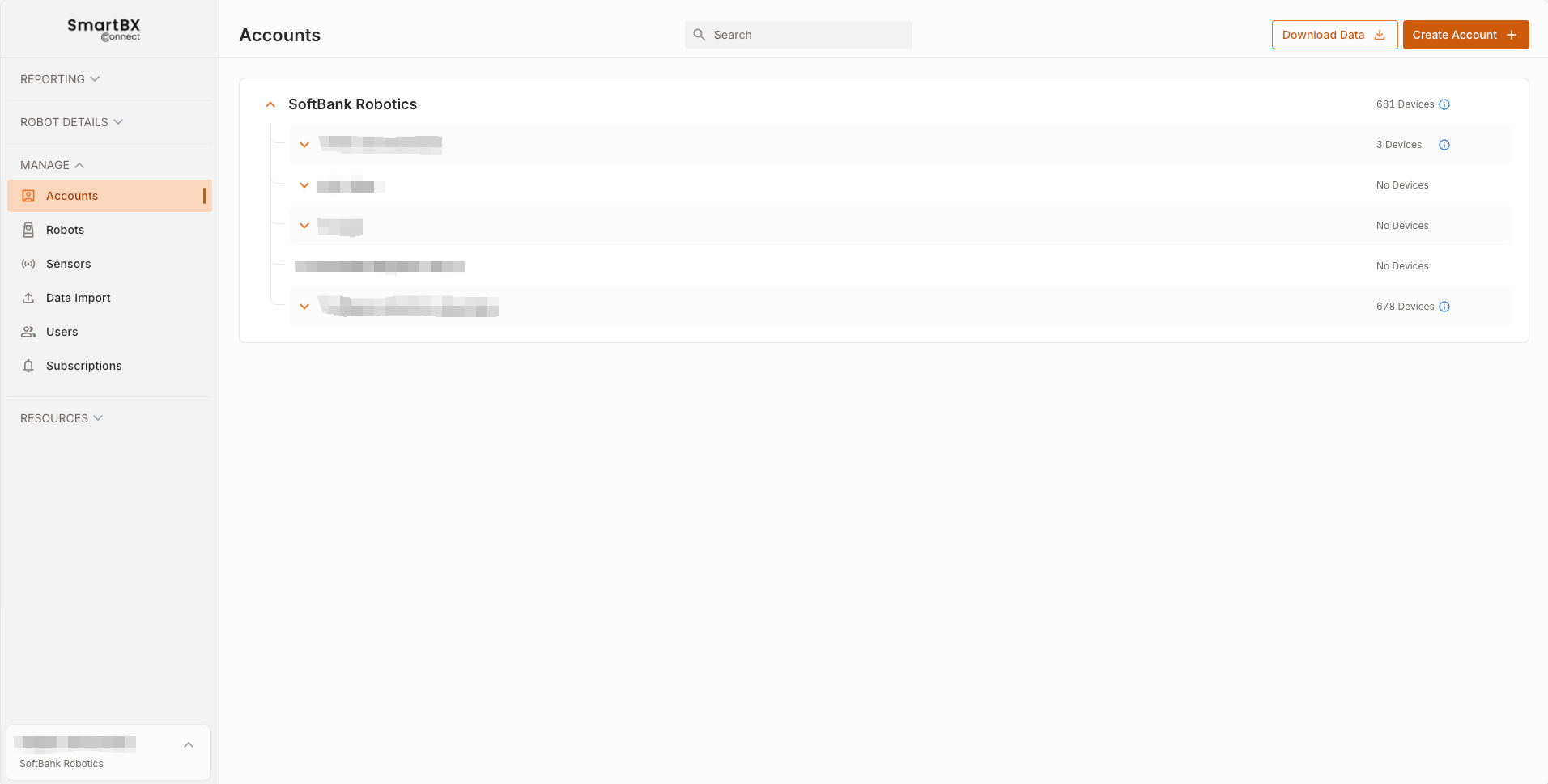 SBX Connectは階層型アカウント管理システムを提供し、組織の運用ニーズに応じて顧客や施設を構成できます。ユーザーが上位アカウントの権限を持つ場合、関連するすべての下位アカウントに自動的にアクセスできます。特定の設定が定義されていない場合、子アカウントは親アカウントの設定を継承します。