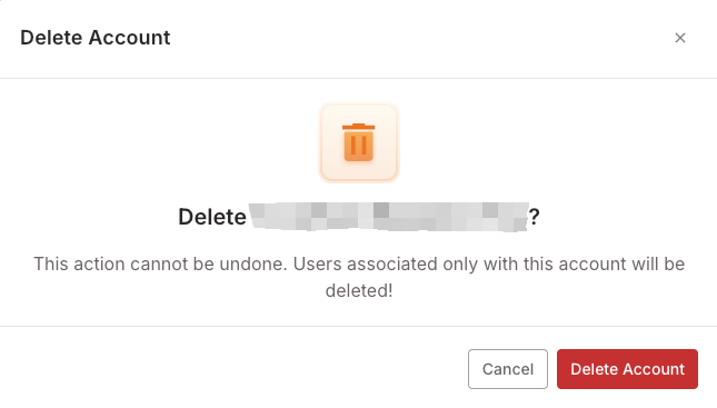 - アカウントを削除することを確認した後、[Delete Account]ボタンをクリックします。