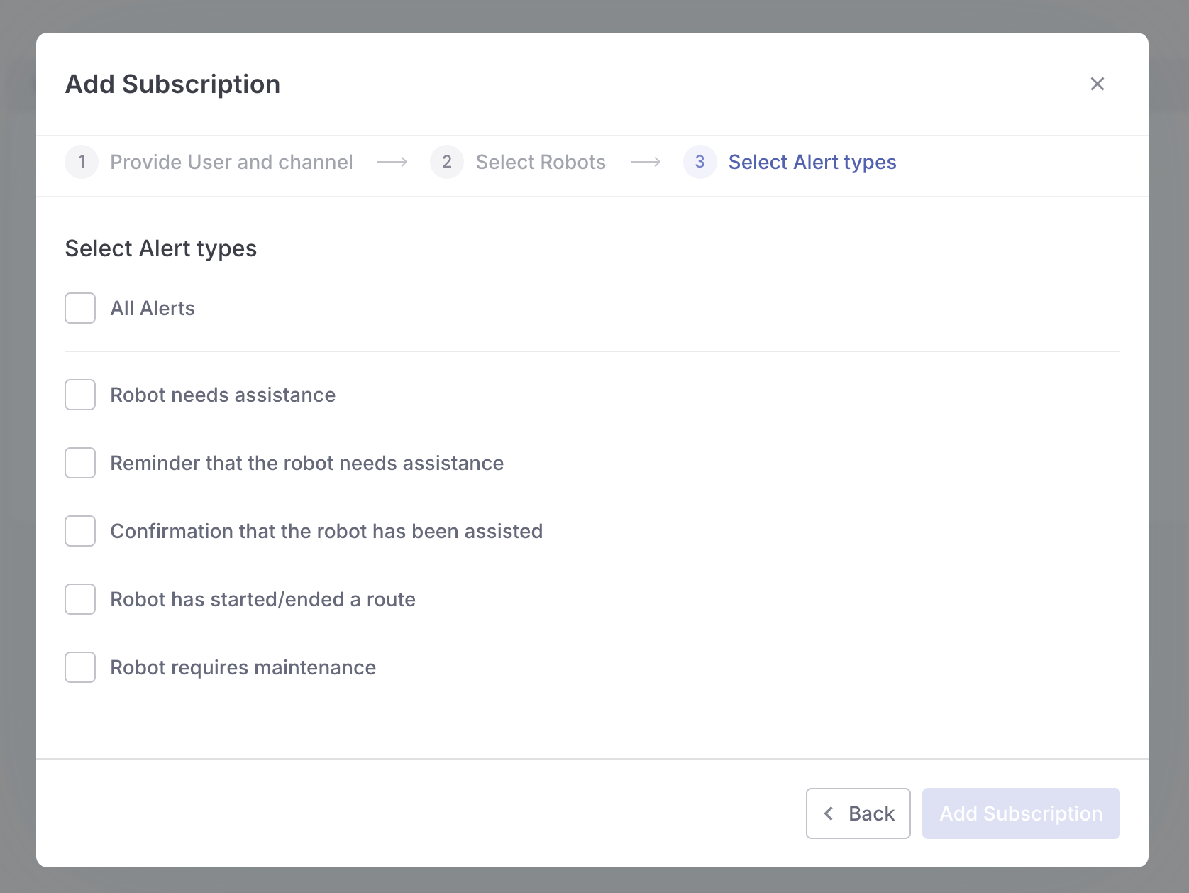 アラートタイプを選択し、Add Subscriptionをクリックします。