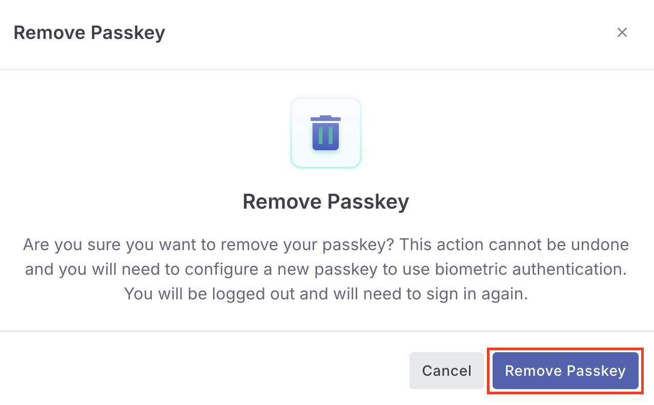 - 下にスクロールして「パスキーを削除」をクリックしてください。