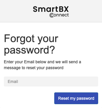 パスワードをお忘れの場合は、組織の管理者またはSBRサポートまでご連絡ください。ユーザープロファイルをリセットし、アカウントの再設定に関する手順を記載したメールをお送りします。