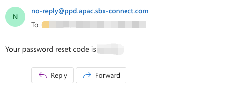 - no-reply@ppd.apac.sbx-connect.com から以下のようなメールが届き、リセットコードが表示されます。